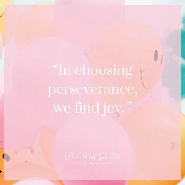 We needed to persevere until our trial was complete. I needed to let it finish its work. I needed to learn that in choosing perseverance, I’d find joy. Consider it all joy, when I faced trials of many kinds this year.